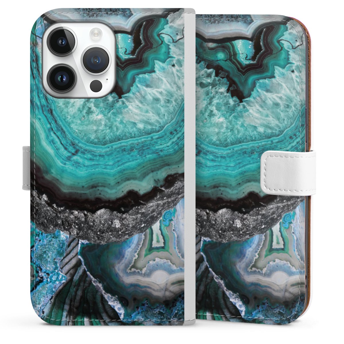 For our Sideflip Case we are using our advanced direct printing technology. The back and frontside are fully printabale, the inside of the phone bag is left unprinted. You can order the phone case without print, printed completely or also with a partial print.