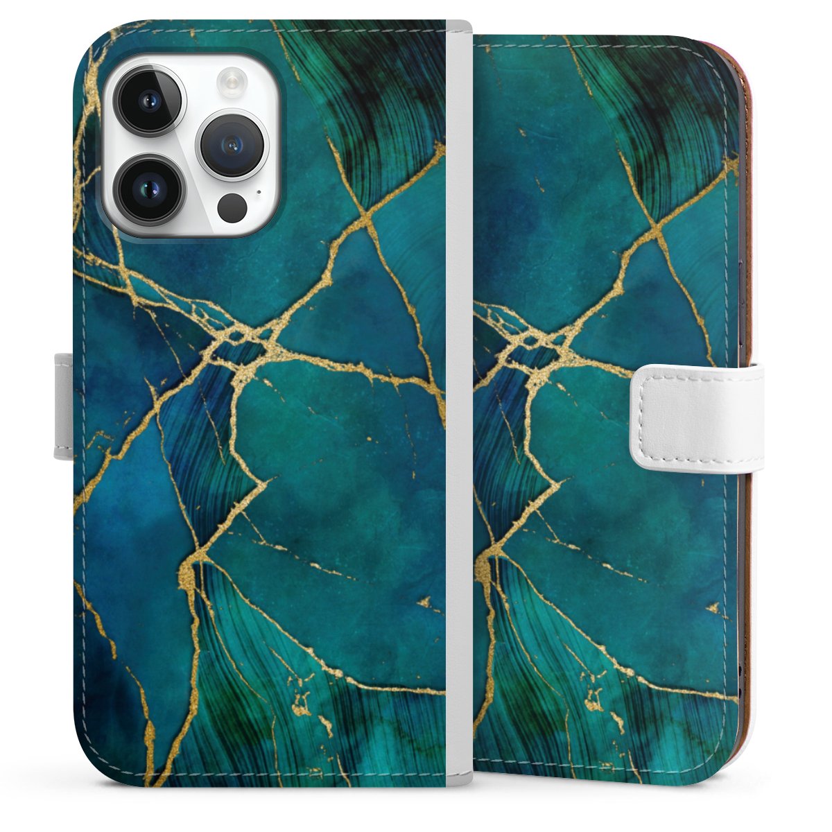 For our Sideflip Case we are using our advanced direct printing technology. The back and frontside are fully printabale, the inside of the phone bag is left unprinted. You can order the phone case without print, printed completely or also with a partial print.