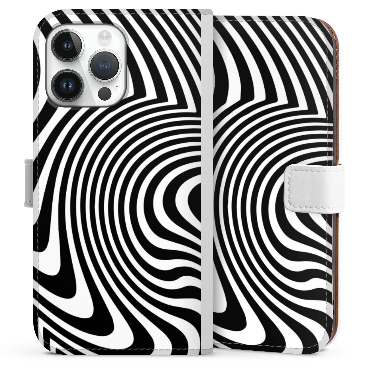 For our Sideflip Case we are using our advanced direct printing technology. The back and frontside are fully printabale, the inside of the phone bag is left unprinted. You can order the phone case without print, printed completely or also with a partial print.