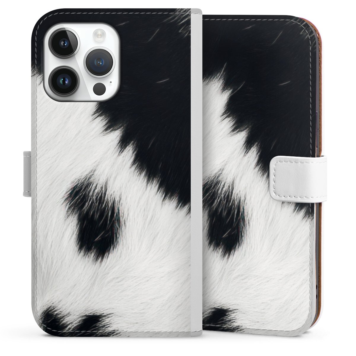 For our Sideflip Case we are using our advanced direct printing technology. The back and frontside are fully printabale, the inside of the phone bag is left unprinted. You can order the phone case without print, printed completely or also with a partial print.