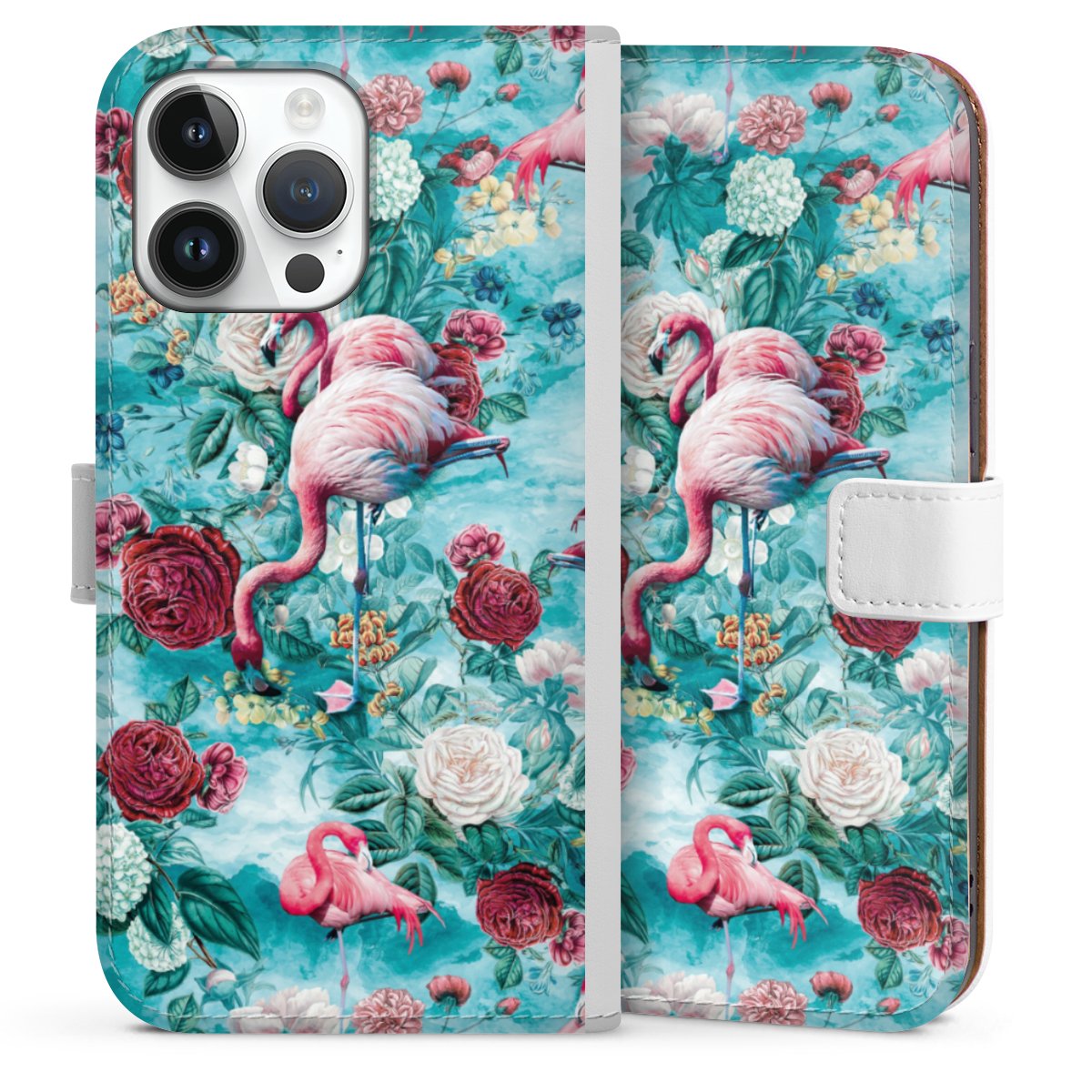 For our Sideflip Case we are using our advanced direct printing technology. The back and frontside are fully printabale, the inside of the phone bag is left unprinted. You can order the phone case without print, printed completely or also with a partial print.