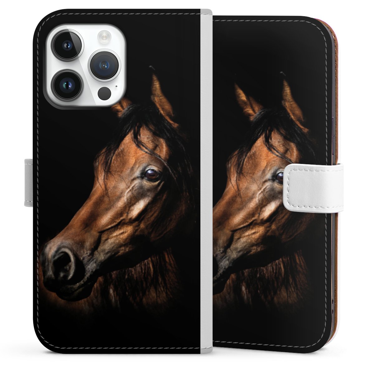 For our Sideflip Case we are using our advanced direct printing technology. The back and frontside are fully printabale, the inside of the phone bag is left unprinted. You can order the phone case without print, printed completely or also with a partial print.