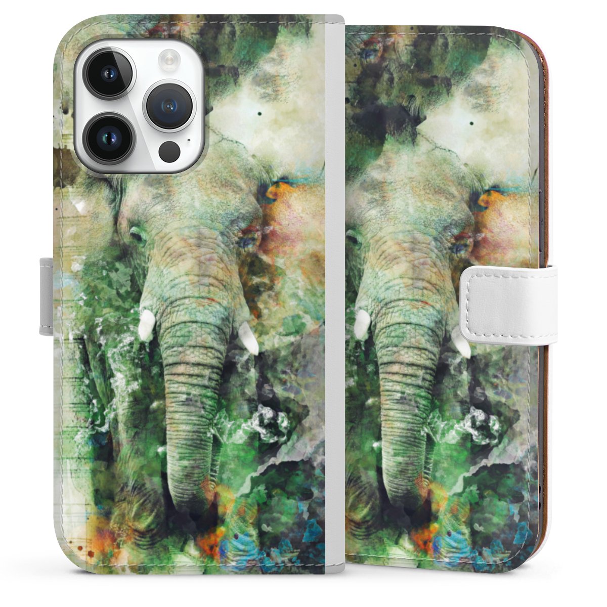 For our Sideflip Case we are using our advanced direct printing technology. The back and frontside are fully printabale, the inside of the phone bag is left unprinted. You can order the phone case without print, printed completely or also with a partial print.