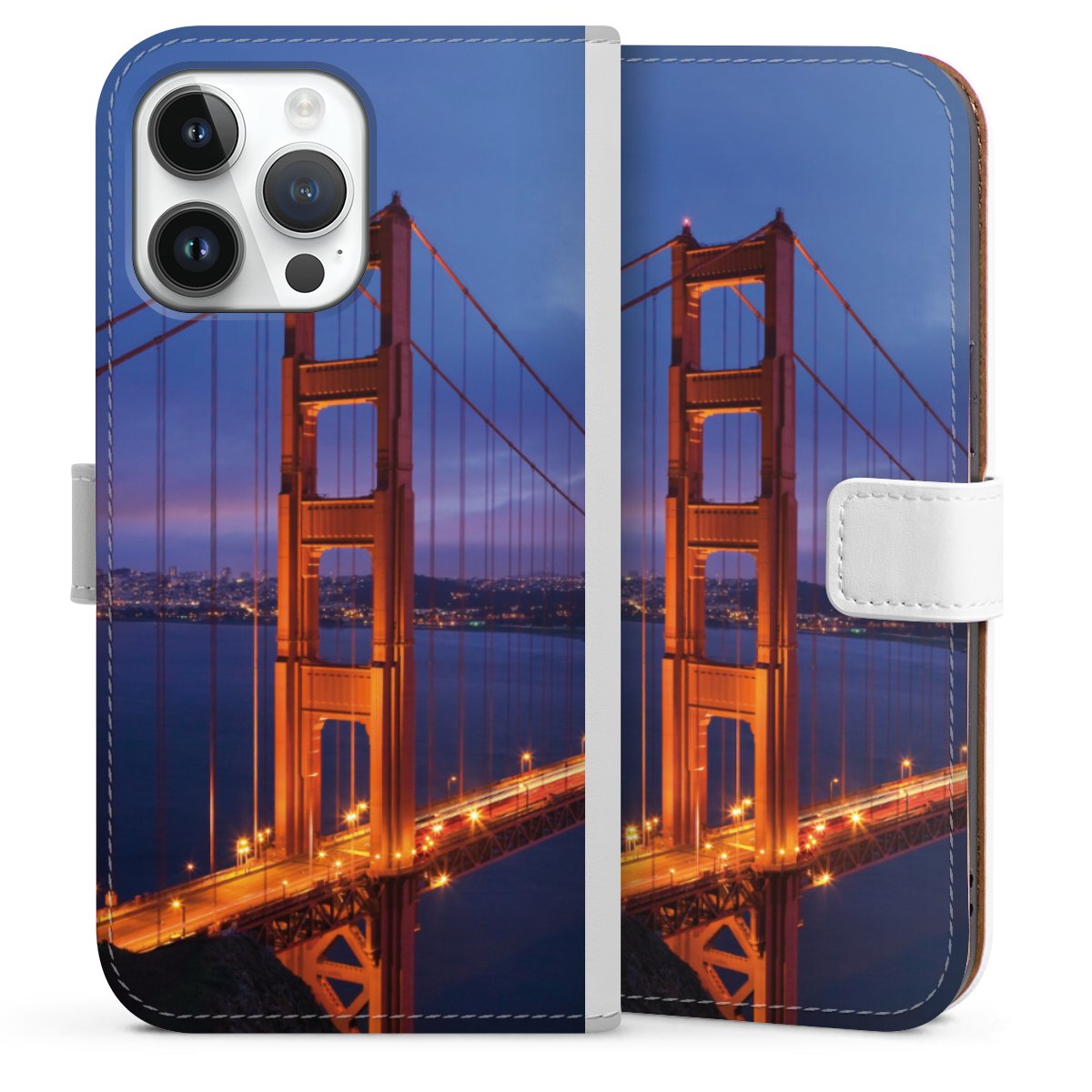 For our Sideflip Case we are using our advanced direct printing technology. The back and frontside are fully printabale, the inside of the phone bag is left unprinted. You can order the phone case without print, printed completely or also with a partial print.