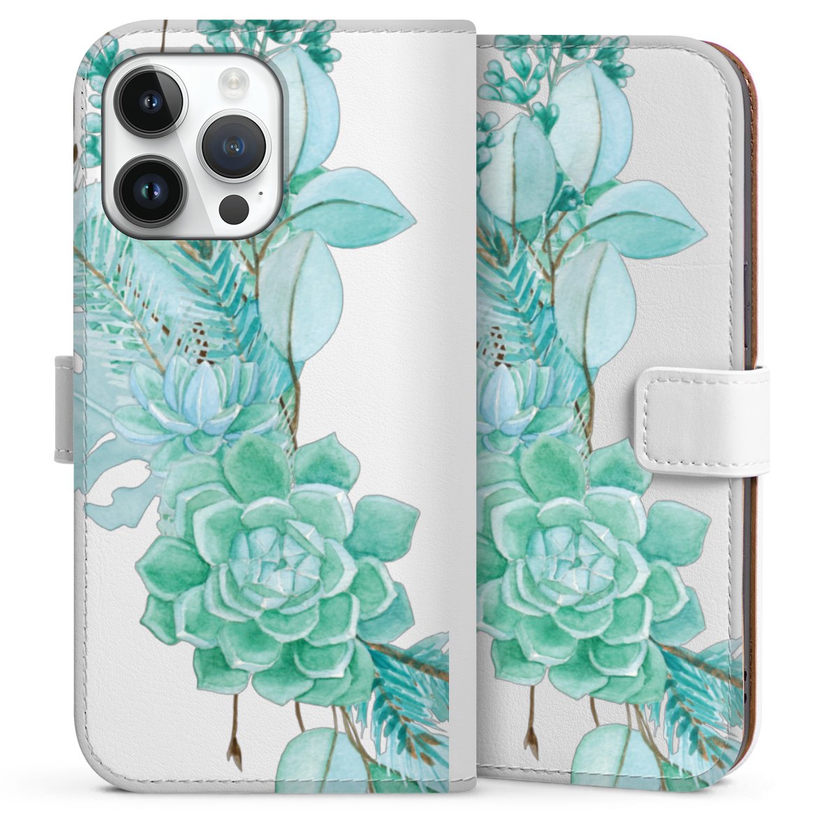For our Sideflip Case we are using our advanced direct printing technology. The back and frontside are fully printabale, the inside of the phone bag is left unprinted. You can order the phone case without print, printed completely or also with a partial print.