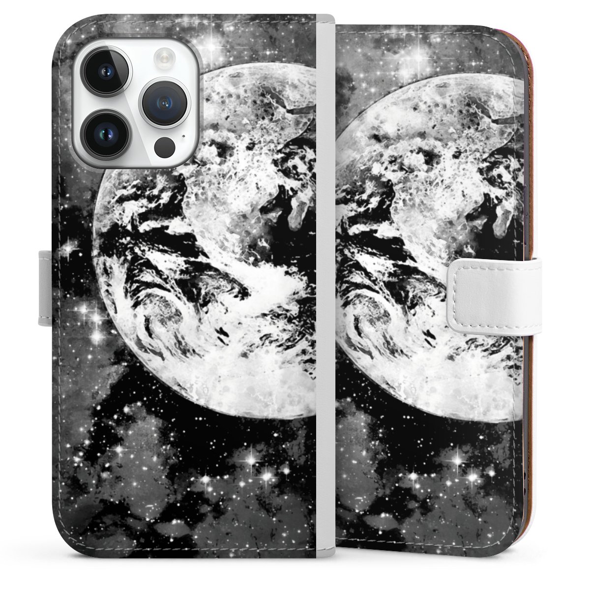 For our Sideflip Case we are using our advanced direct printing technology. The back and frontside are fully printabale, the inside of the phone bag is left unprinted. You can order the phone case without print, printed completely or also with a partial print.