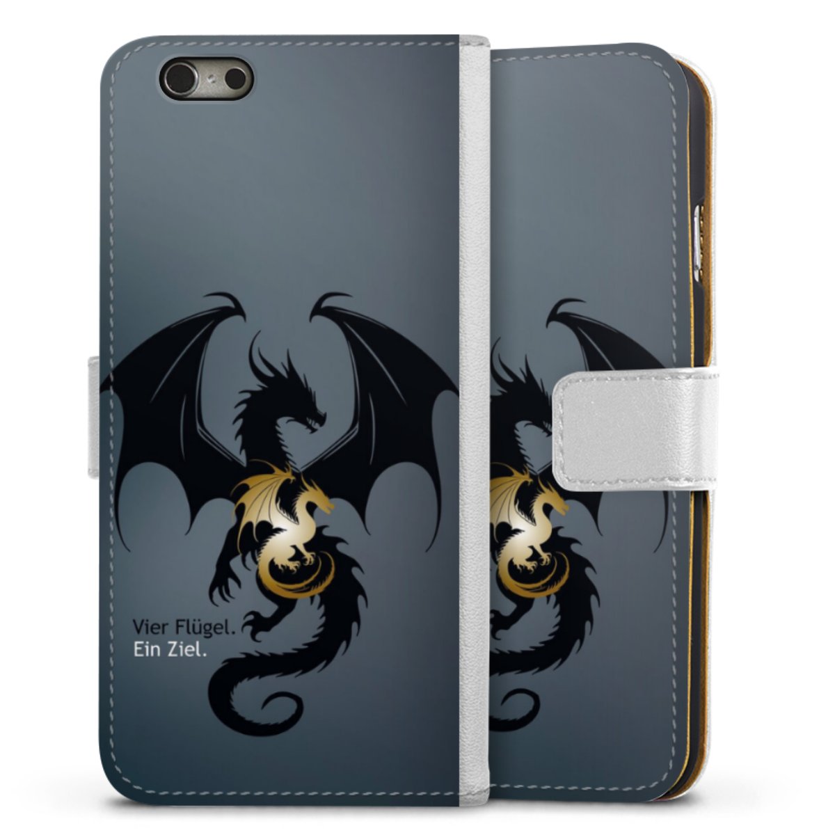 For our Sideflip Case we are using our advanced direct printing technology. The back and frontside are fully printabale, the inside of the phone bag is left unprinted. You can order the phone case without print, printed completely or also with a partial print.
