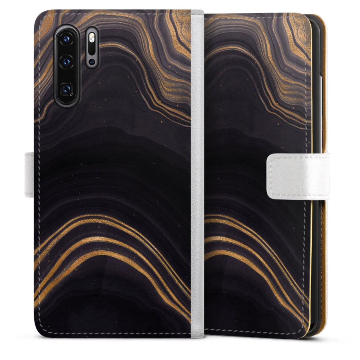 For our Sideflip Case we are using our advanced direct printing technology. The back and frontside are fully printabale, the inside of the phone bag is left unprinted. You can order the phone case without print, printed completely or also with a partial print.