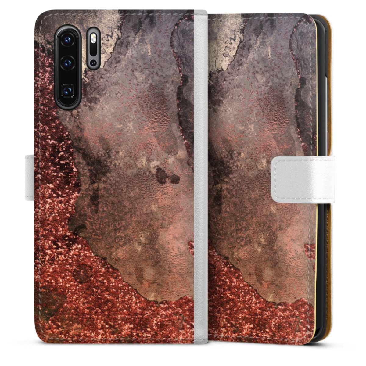 For our Sideflip Case we are using our advanced direct printing technology. The back and frontside are fully printabale, the inside of the phone bag is left unprinted. You can order the phone case without print, printed completely or also with a partial print.
