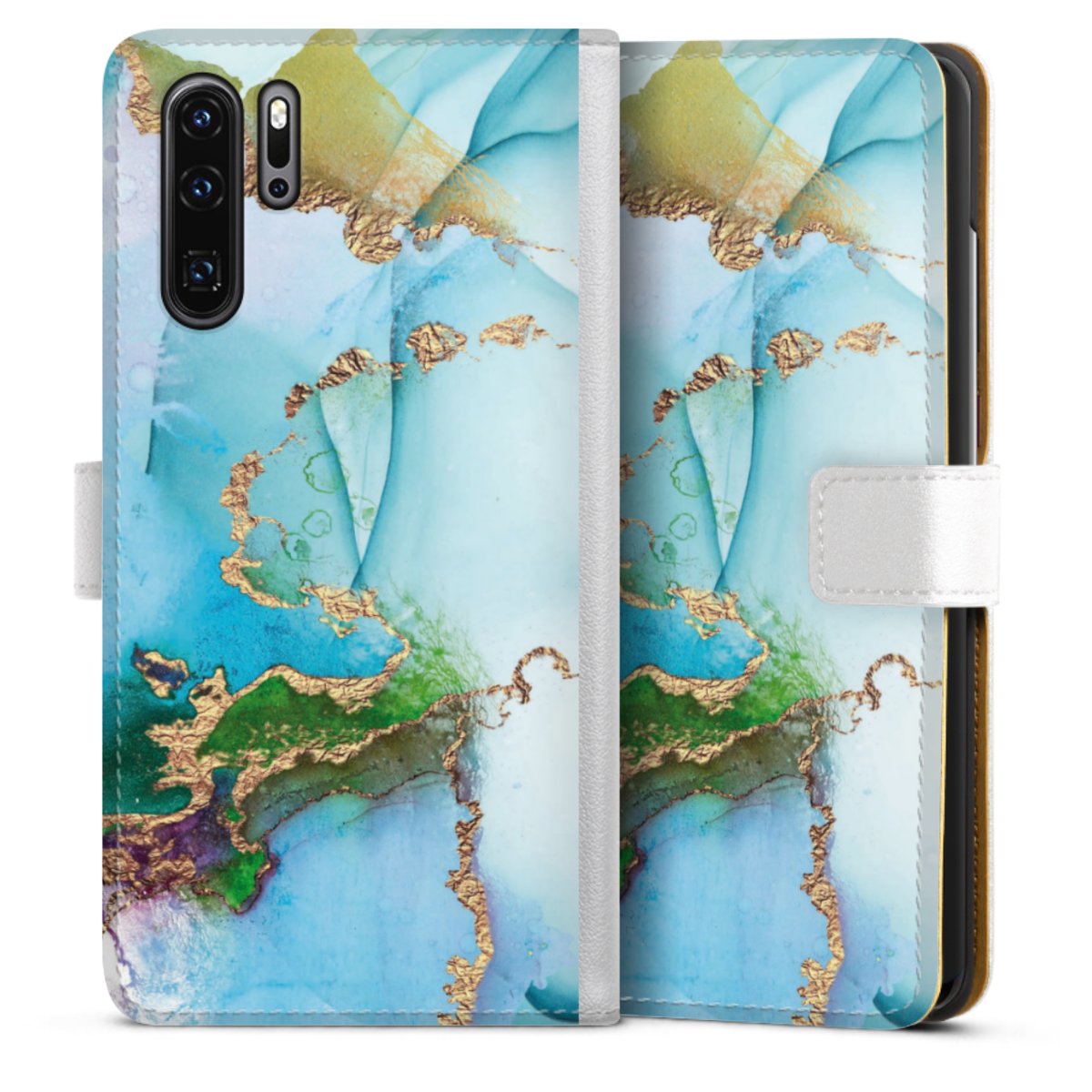 For our Sideflip Case we are using our advanced direct printing technology. The back and frontside are fully printabale, the inside of the phone bag is left unprinted. You can order the phone case without print, printed completely or also with a partial print.