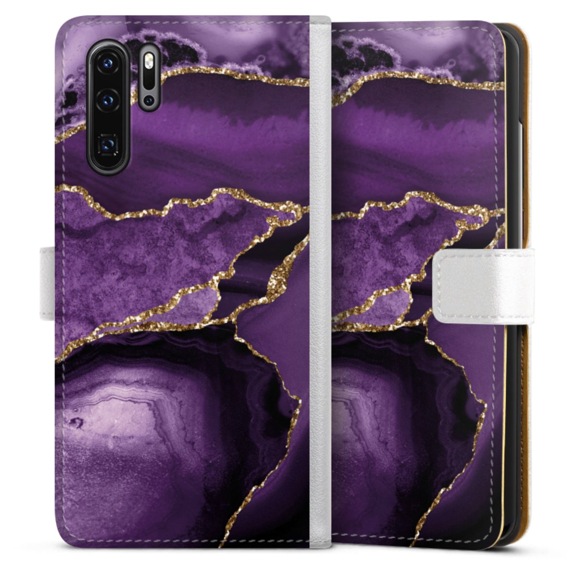 For our Sideflip Case we are using our advanced direct printing technology. The back and frontside are fully printabale, the inside of the phone bag is left unprinted. You can order the phone case without print, printed completely or also with a partial print.
