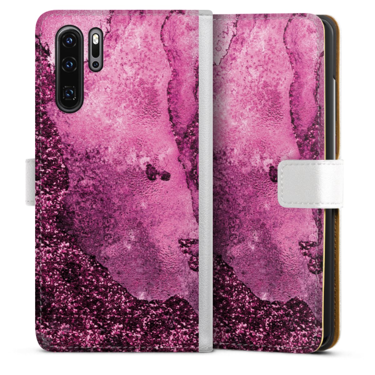 For our Sideflip Case we are using our advanced direct printing technology. The back and frontside are fully printabale, the inside of the phone bag is left unprinted. You can order the phone case without print, printed completely or also with a partial print.