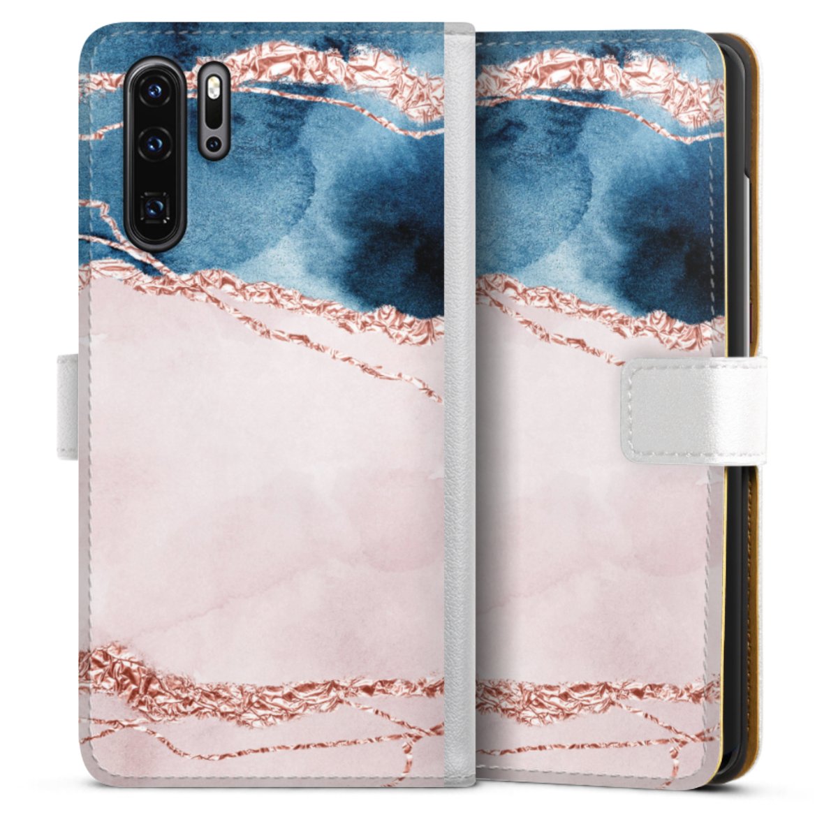 For our Sideflip Case we are using our advanced direct printing technology. The back and frontside are fully printabale, the inside of the phone bag is left unprinted. You can order the phone case without print, printed completely or also with a partial print.