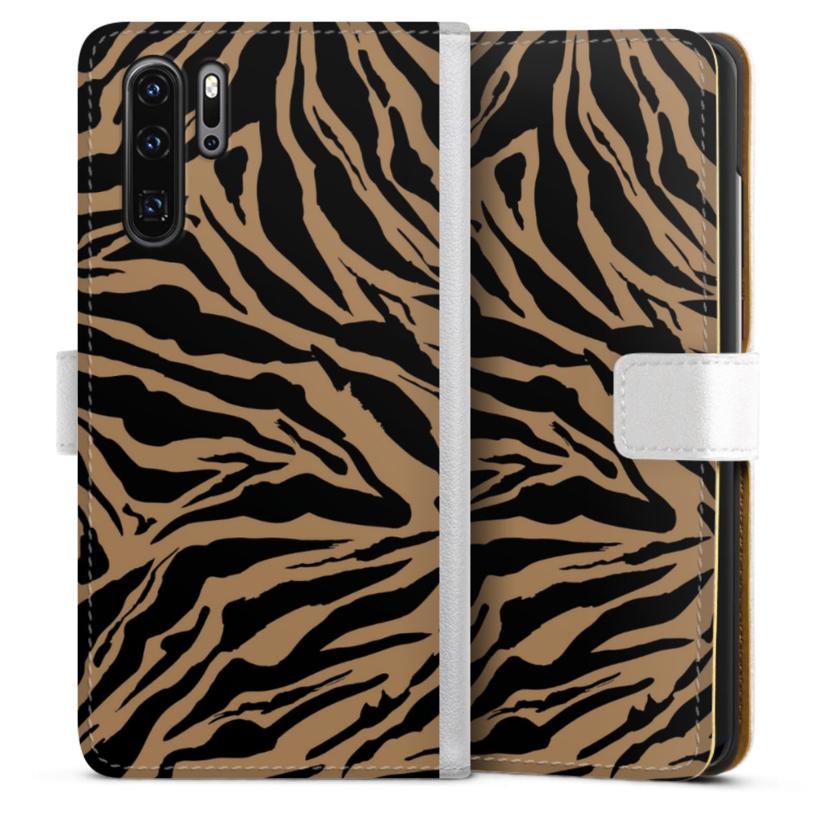 For our Sideflip Case we are using our advanced direct printing technology. The back and frontside are fully printabale, the inside of the phone bag is left unprinted. You can order the phone case without print, printed completely or also with a partial print.