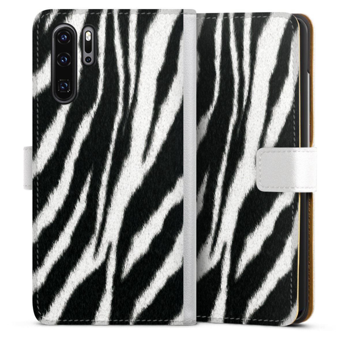 For our Sideflip Case we are using our advanced direct printing technology. The back and frontside are fully printabale, the inside of the phone bag is left unprinted. You can order the phone case without print, printed completely or also with a partial print.