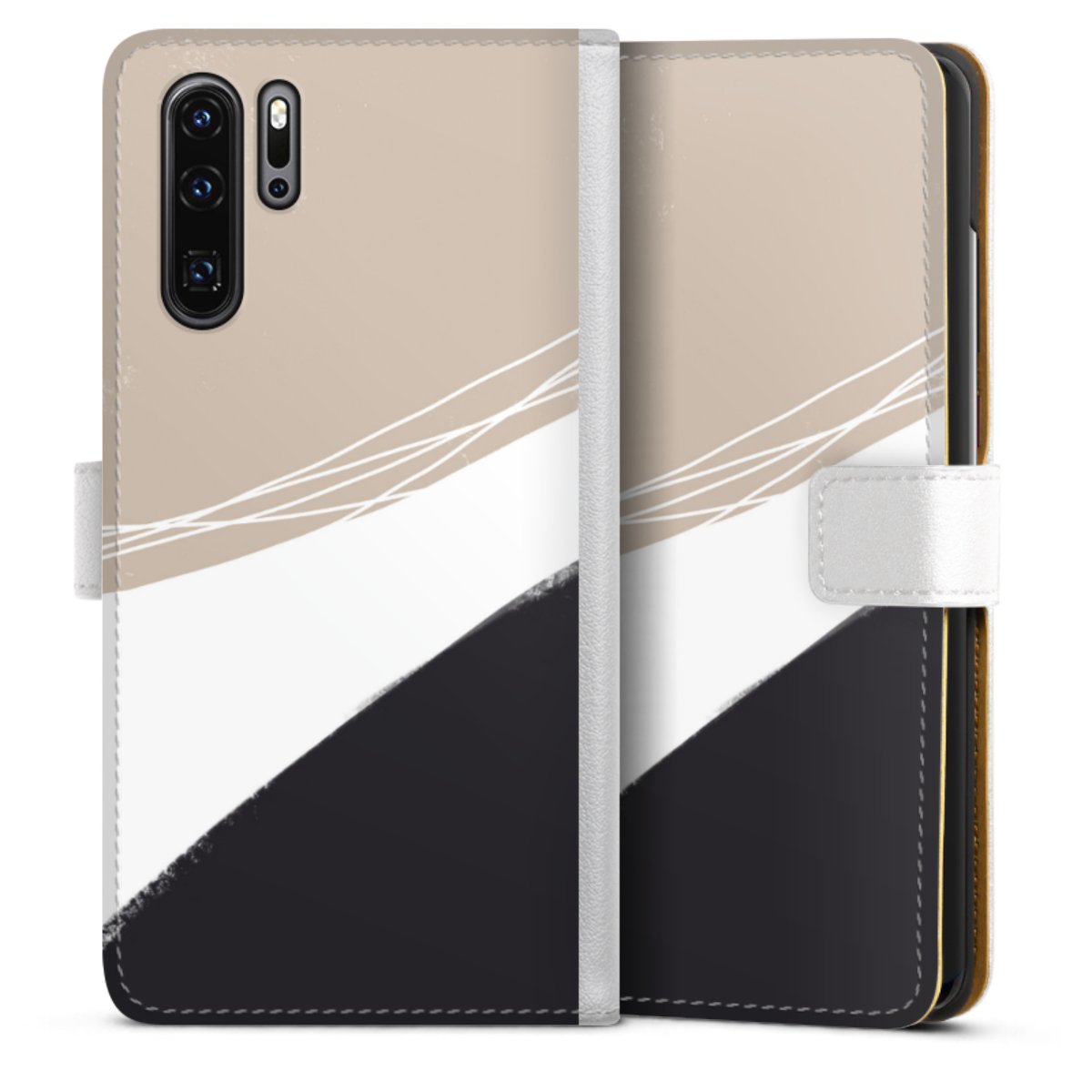 For our Sideflip Case we are using our advanced direct printing technology. The back and frontside are fully printabale, the inside of the phone bag is left unprinted. You can order the phone case without print, printed completely or also with a partial print.