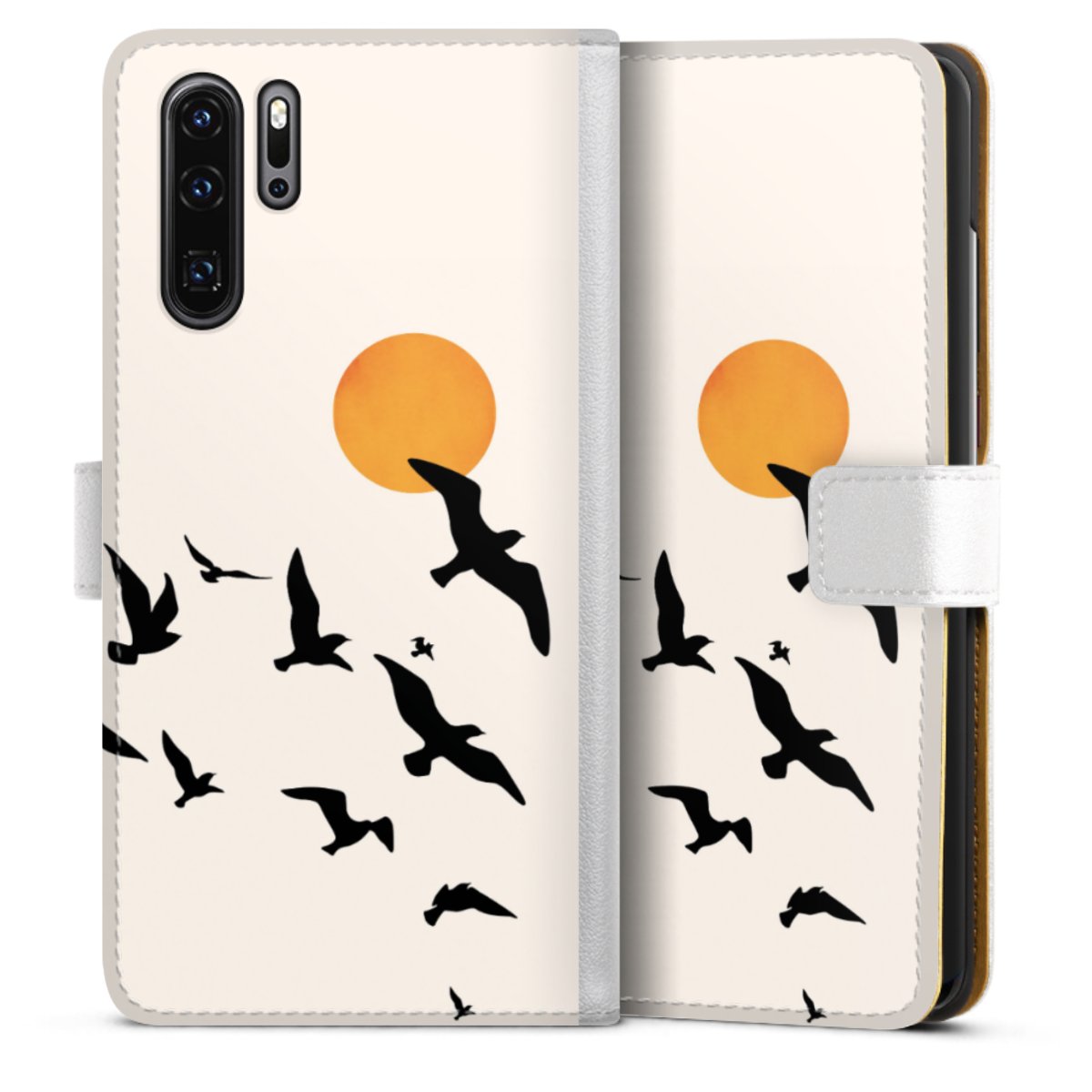 For our Sideflip Case we are using our advanced direct printing technology. The back and frontside are fully printabale, the inside of the phone bag is left unprinted. You can order the phone case without print, printed completely or also with a partial print.