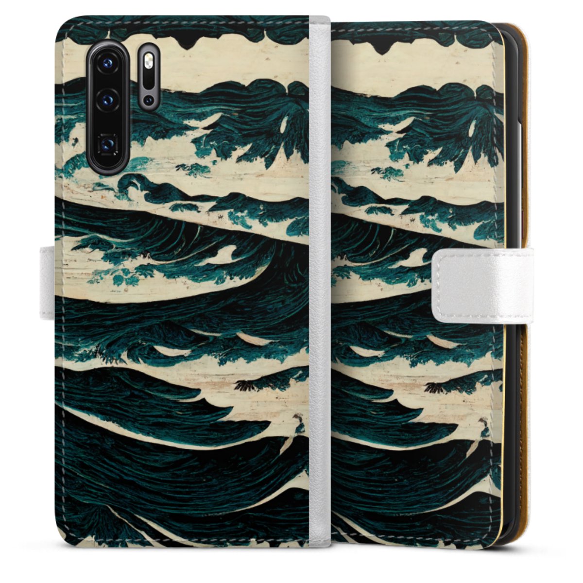 For our Sideflip Case we are using our advanced direct printing technology. The back and frontside are fully printabale, the inside of the phone bag is left unprinted. You can order the phone case without print, printed completely or also with a partial print.