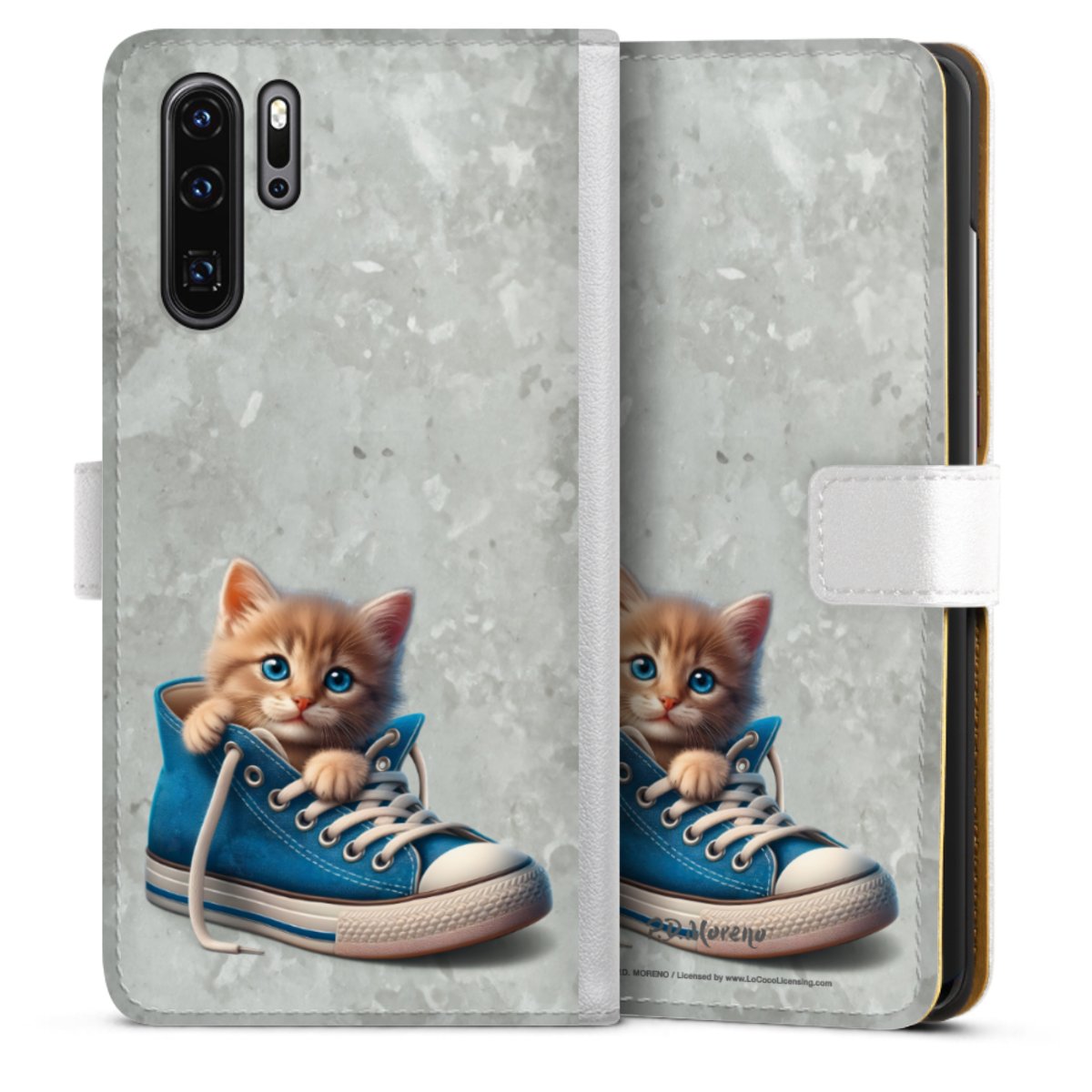 For our Sideflip Case we are using our advanced direct printing technology. The back and frontside are fully printabale, the inside of the phone bag is left unprinted. You can order the phone case without print, printed completely or also with a partial print.