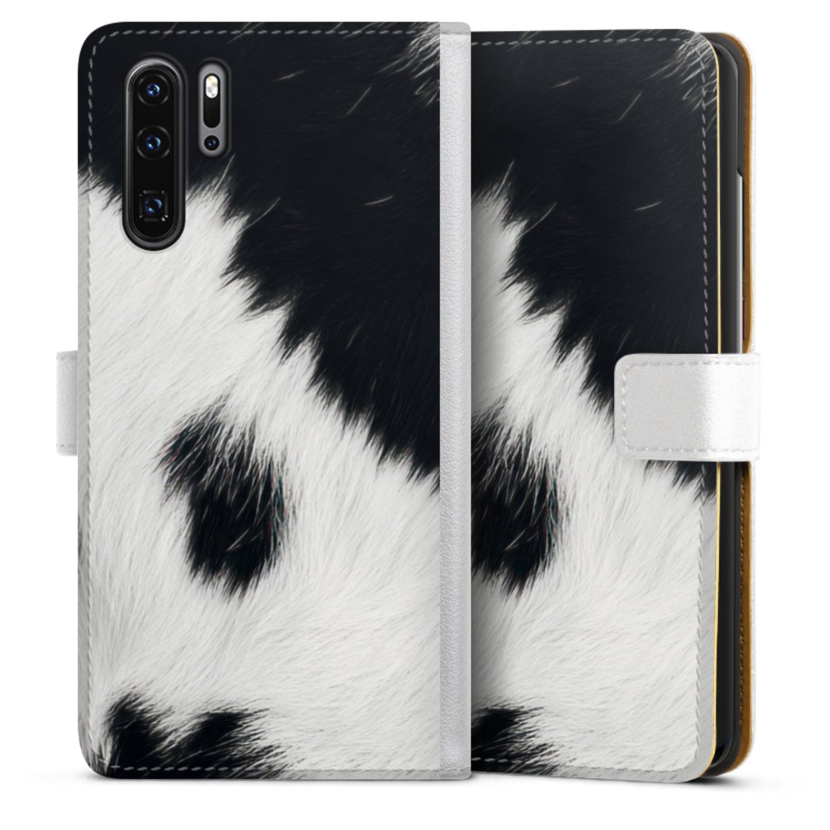 For our Sideflip Case we are using our advanced direct printing technology. The back and frontside are fully printabale, the inside of the phone bag is left unprinted. You can order the phone case without print, printed completely or also with a partial print.