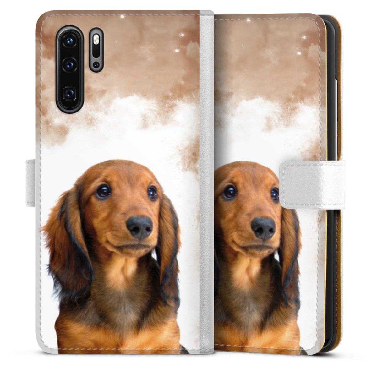 For our Sideflip Case we are using our advanced direct printing technology. The back and frontside are fully printabale, the inside of the phone bag is left unprinted. You can order the phone case without print, printed completely or also with a partial print.