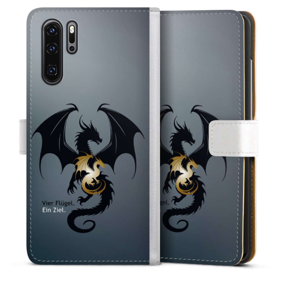 For our Sideflip Case we are using our advanced direct printing technology. The back and frontside are fully printabale, the inside of the phone bag is left unprinted. You can order the phone case without print, printed completely or also with a partial print.