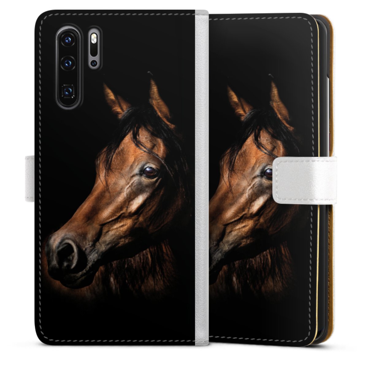 For our Sideflip Case we are using our advanced direct printing technology. The back and frontside are fully printabale, the inside of the phone bag is left unprinted. You can order the phone case without print, printed completely or also with a partial print.