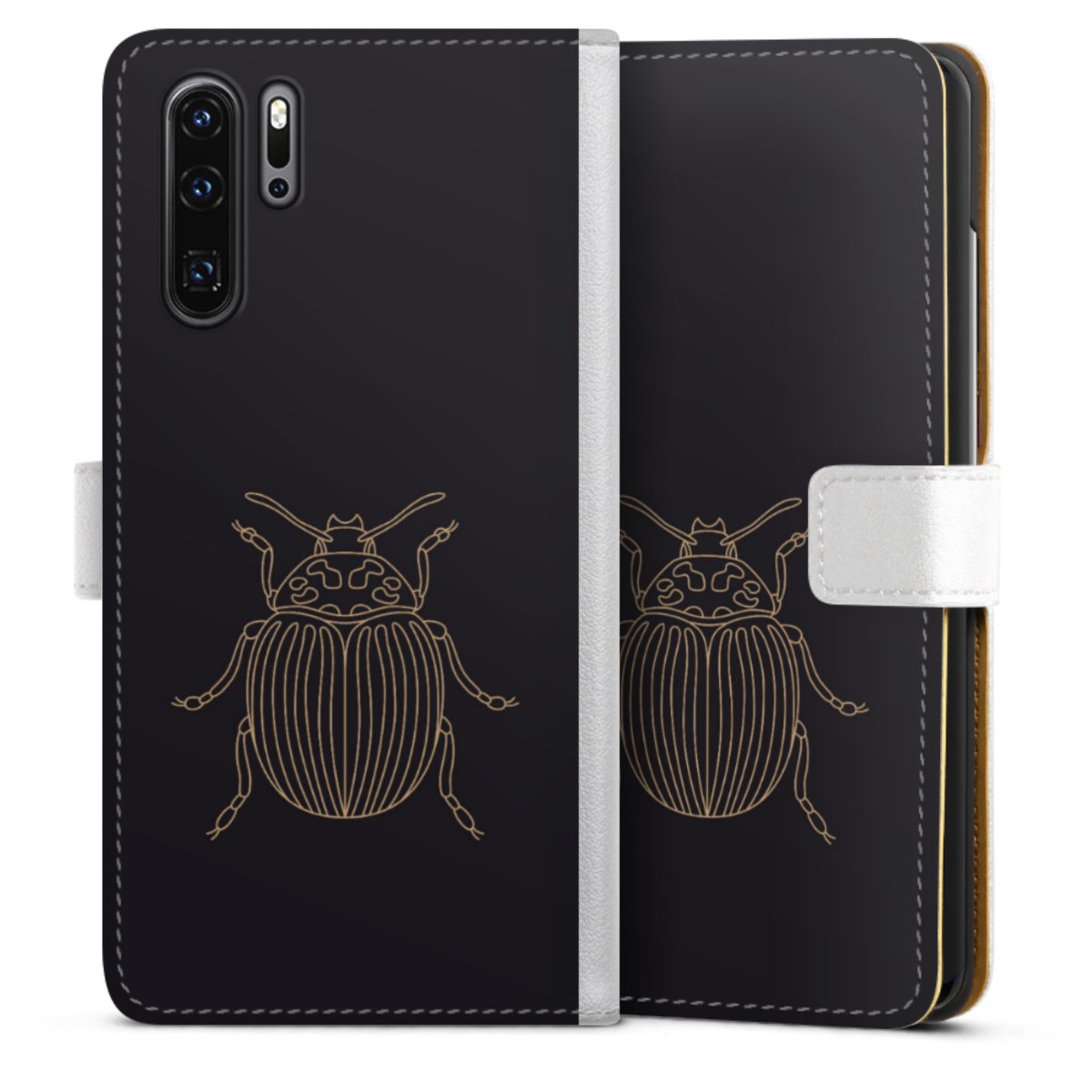 For our Sideflip Case we are using our advanced direct printing technology. The back and frontside are fully printabale, the inside of the phone bag is left unprinted. You can order the phone case without print, printed completely or also with a partial print.