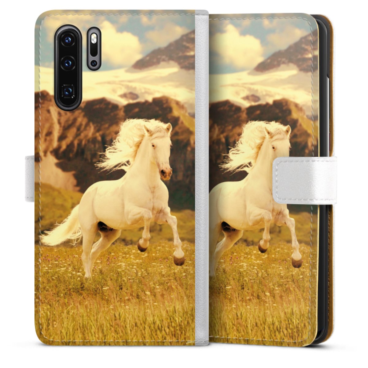 For our Sideflip Case we are using our advanced direct printing technology. The back and frontside are fully printabale, the inside of the phone bag is left unprinted. You can order the phone case without print, printed completely or also with a partial print.