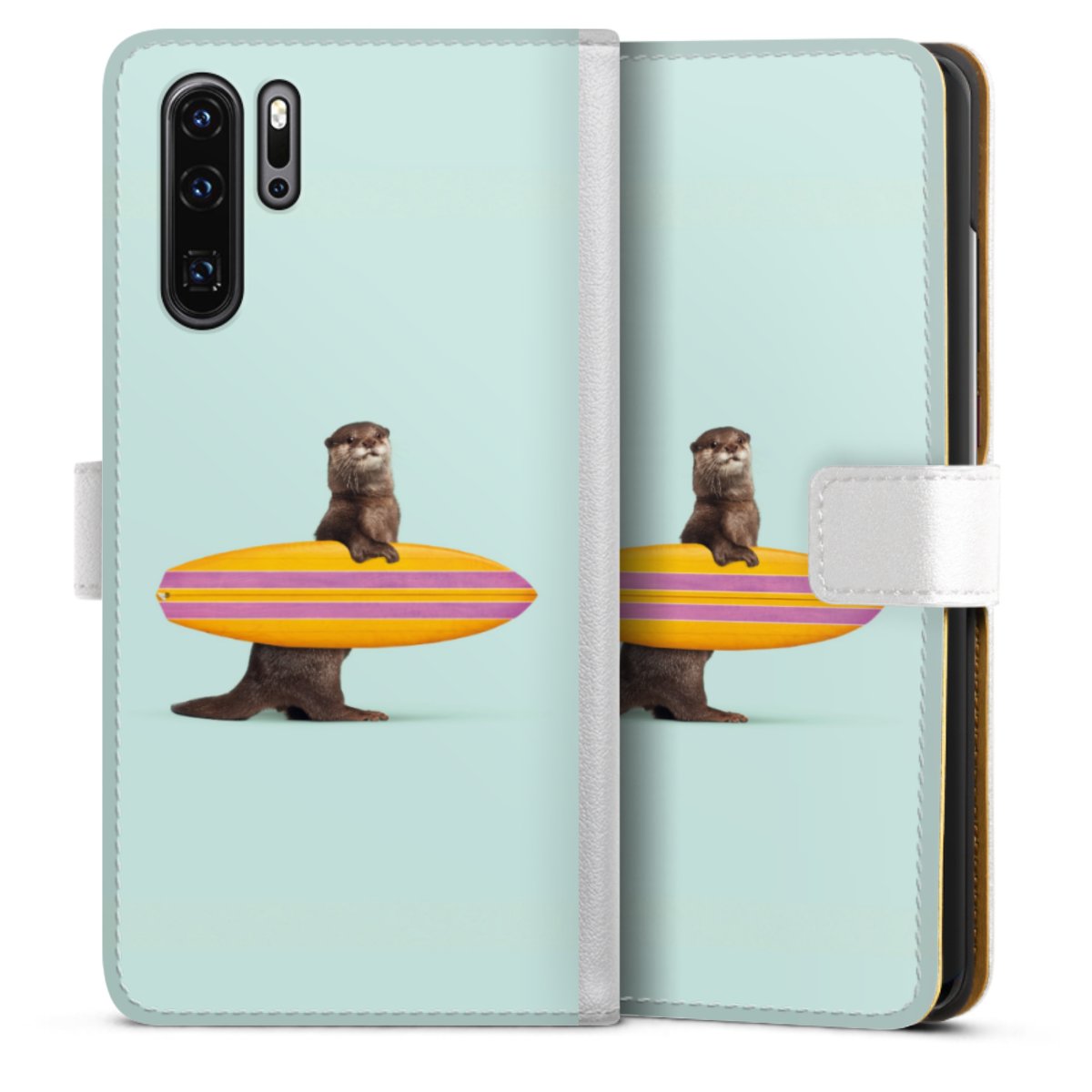 For our Sideflip Case we are using our advanced direct printing technology. The back and frontside are fully printabale, the inside of the phone bag is left unprinted. You can order the phone case without print, printed completely or also with a partial print.
