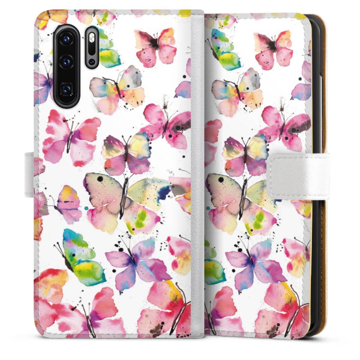 For our Sideflip Case we are using our advanced direct printing technology. The back and frontside are fully printabale, the inside of the phone bag is left unprinted. You can order the phone case without print, printed completely or also with a partial print.