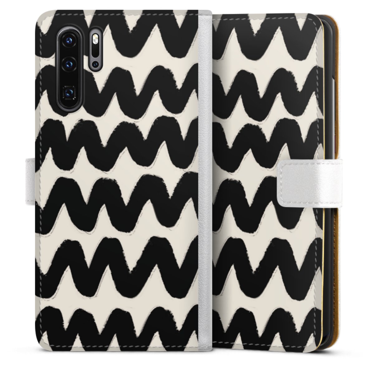For our Sideflip Case we are using our advanced direct printing technology. The back and frontside are fully printabale, the inside of the phone bag is left unprinted. You can order the phone case without print, printed completely or also with a partial print.