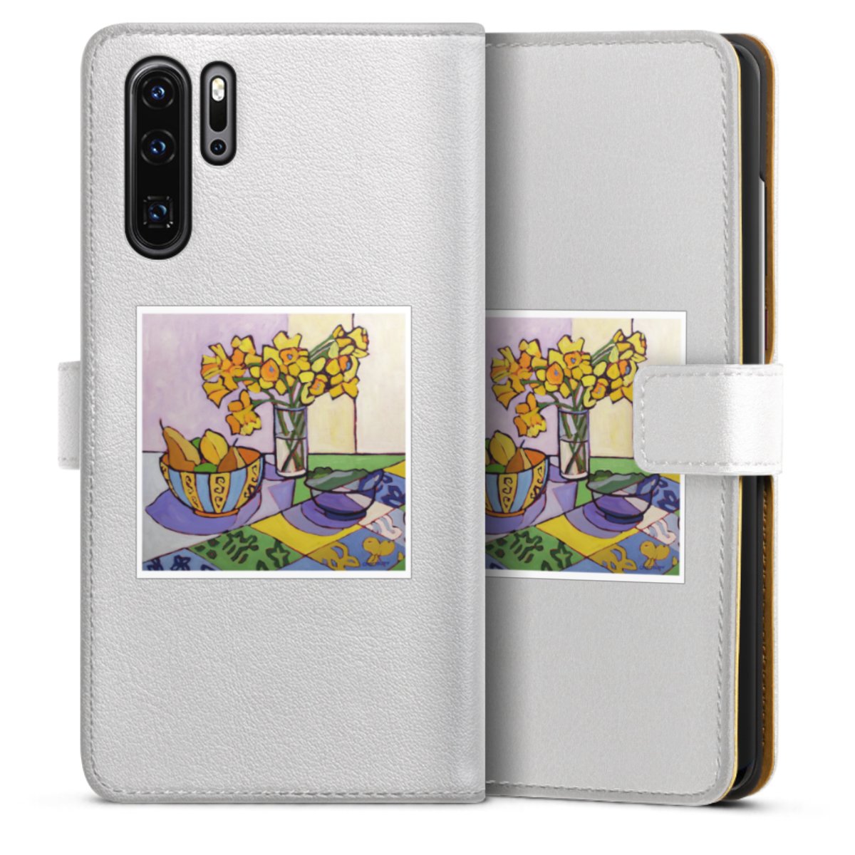 For our Sideflip Case we are using our advanced direct printing technology. The back and frontside are fully printabale, the inside of the phone bag is left unprinted. You can order the phone case without print, printed completely or also with a partial print.