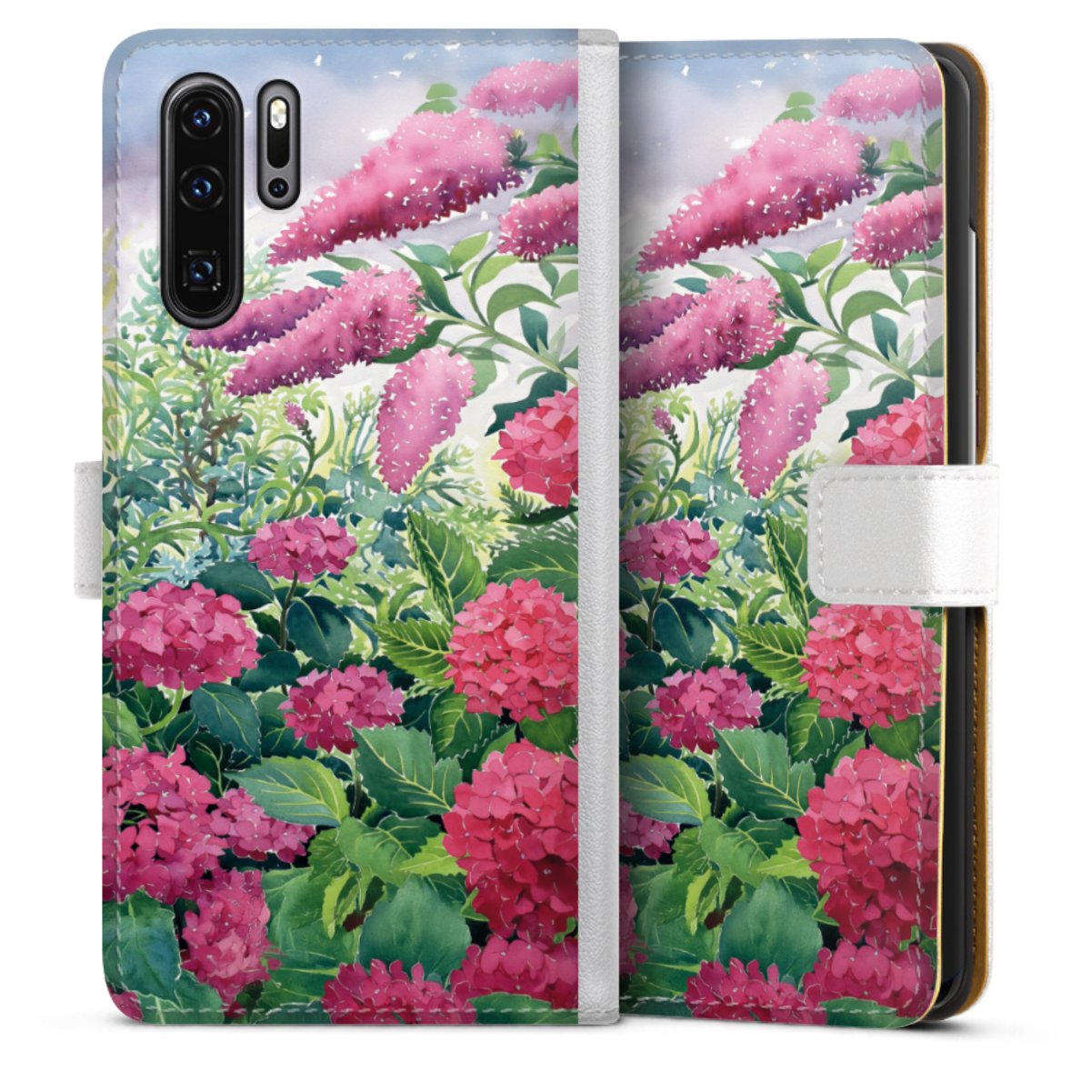 For our Sideflip Case we are using our advanced direct printing technology. The back and frontside are fully printabale, the inside of the phone bag is left unprinted. You can order the phone case without print, printed completely or also with a partial print.