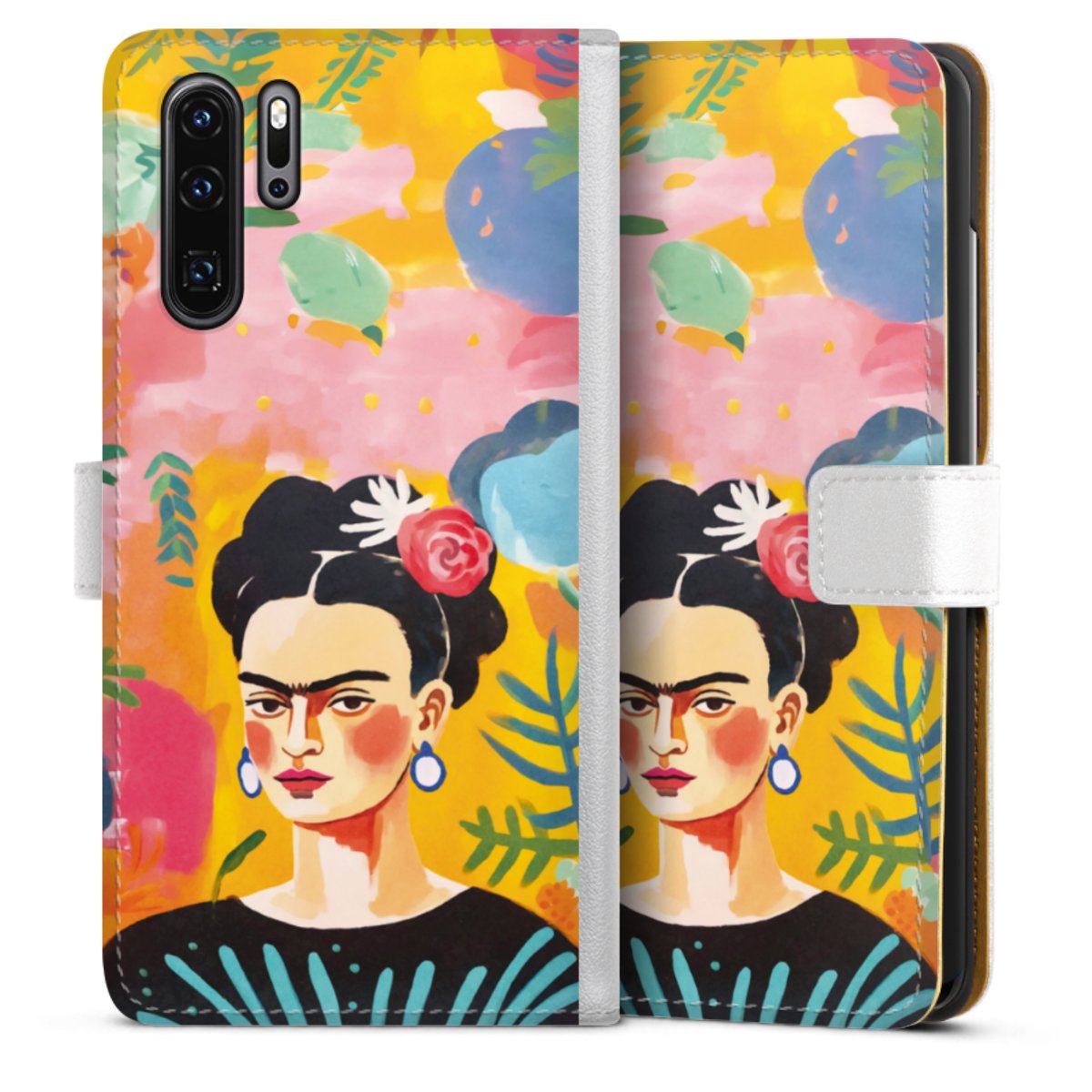 For our Sideflip Case we are using our advanced direct printing technology. The back and frontside are fully printabale, the inside of the phone bag is left unprinted. You can order the phone case without print, printed completely or also with a partial print.