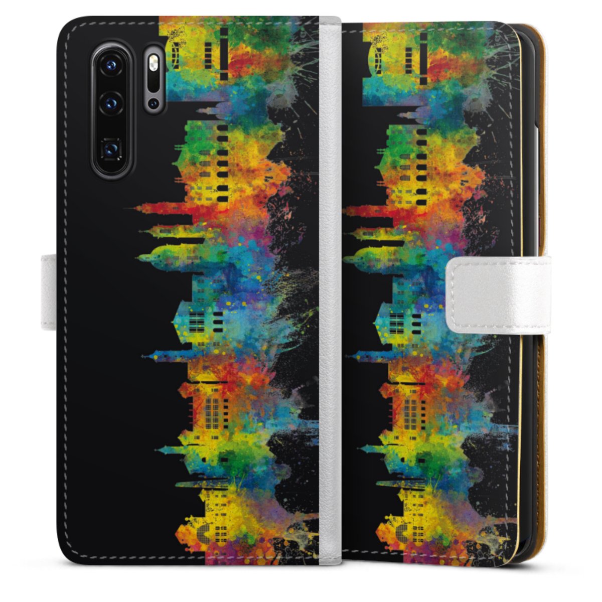 For our Sideflip Case we are using our advanced direct printing technology. The back and frontside are fully printabale, the inside of the phone bag is left unprinted. You can order the phone case without print, printed completely or also with a partial print.