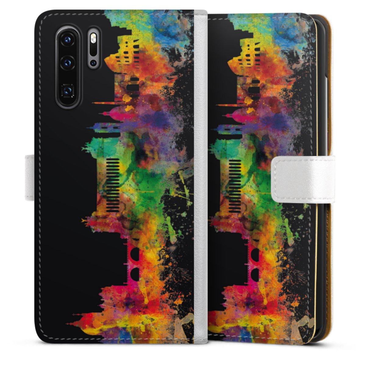 For our Sideflip Case we are using our advanced direct printing technology. The back and frontside are fully printabale, the inside of the phone bag is left unprinted. You can order the phone case without print, printed completely or also with a partial print.