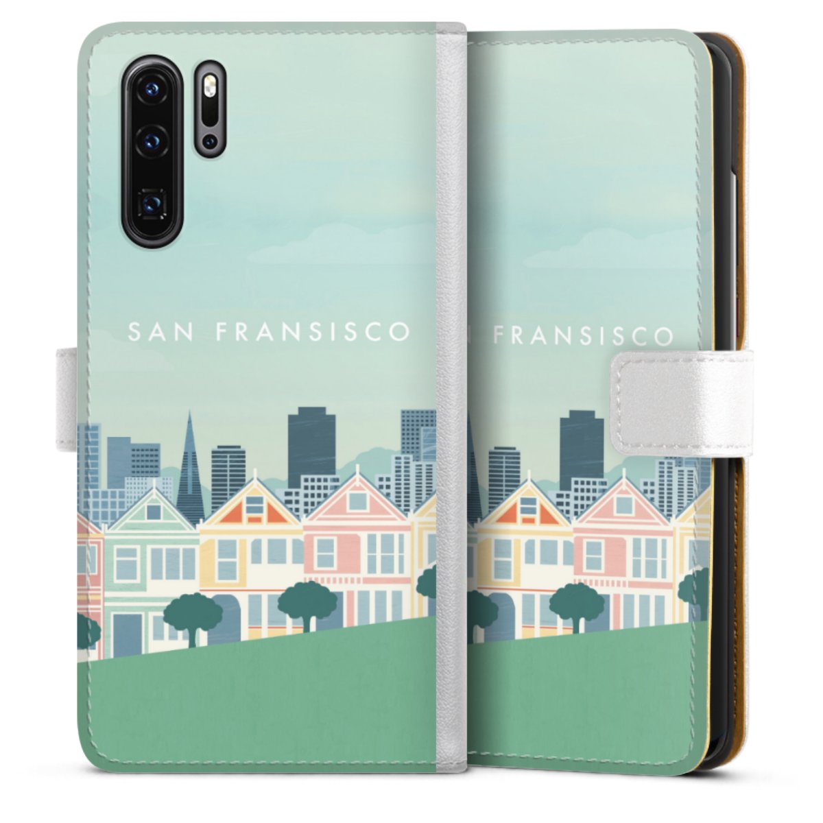 For our Sideflip Case we are using our advanced direct printing technology. The back and frontside are fully printabale, the inside of the phone bag is left unprinted. You can order the phone case without print, printed completely or also with a partial print.