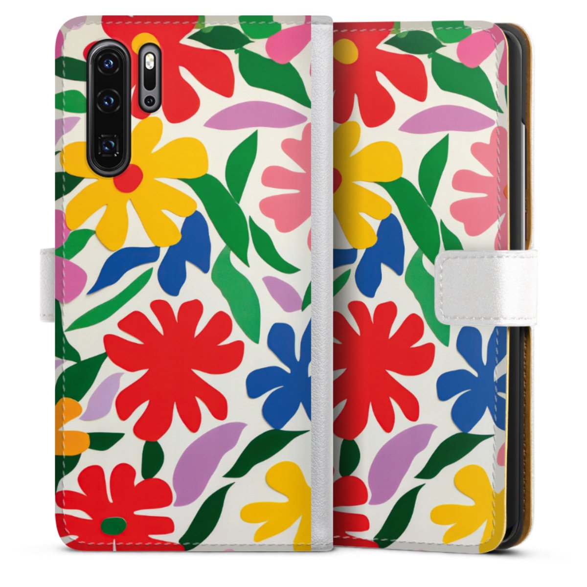 For our Sideflip Case we are using our advanced direct printing technology. The back and frontside are fully printabale, the inside of the phone bag is left unprinted. You can order the phone case without print, printed completely or also with a partial print.