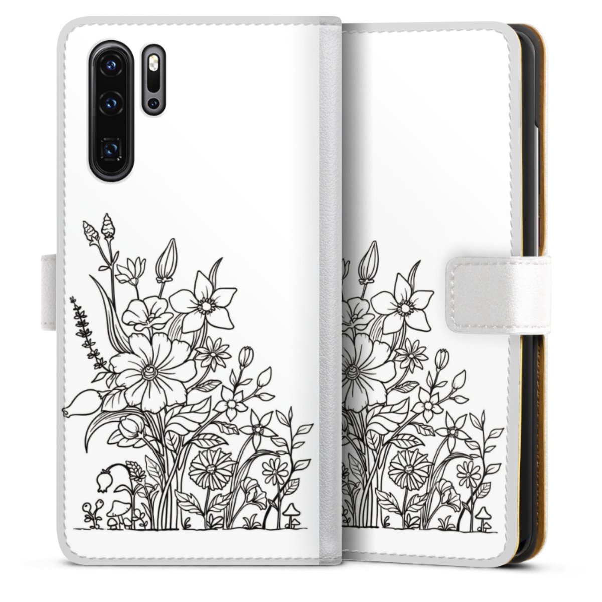 For our Sideflip Case we are using our advanced direct printing technology. The back and frontside are fully printabale, the inside of the phone bag is left unprinted. You can order the phone case without print, printed completely or also with a partial print.