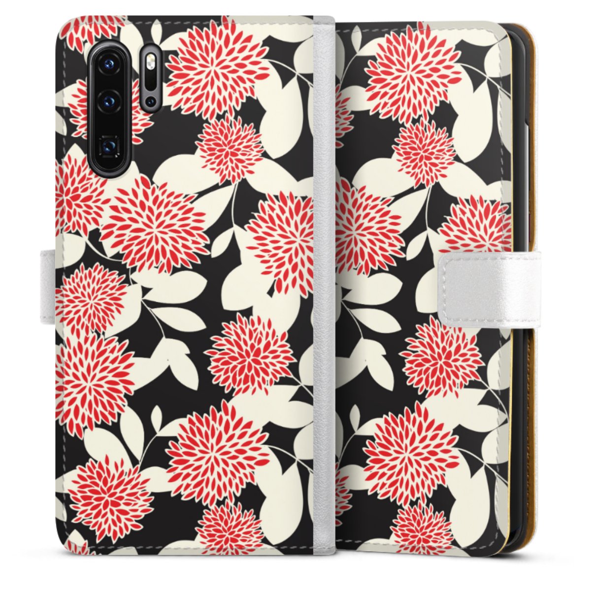 For our Sideflip Case we are using our advanced direct printing technology. The back and frontside are fully printabale, the inside of the phone bag is left unprinted. You can order the phone case without print, printed completely or also with a partial print.