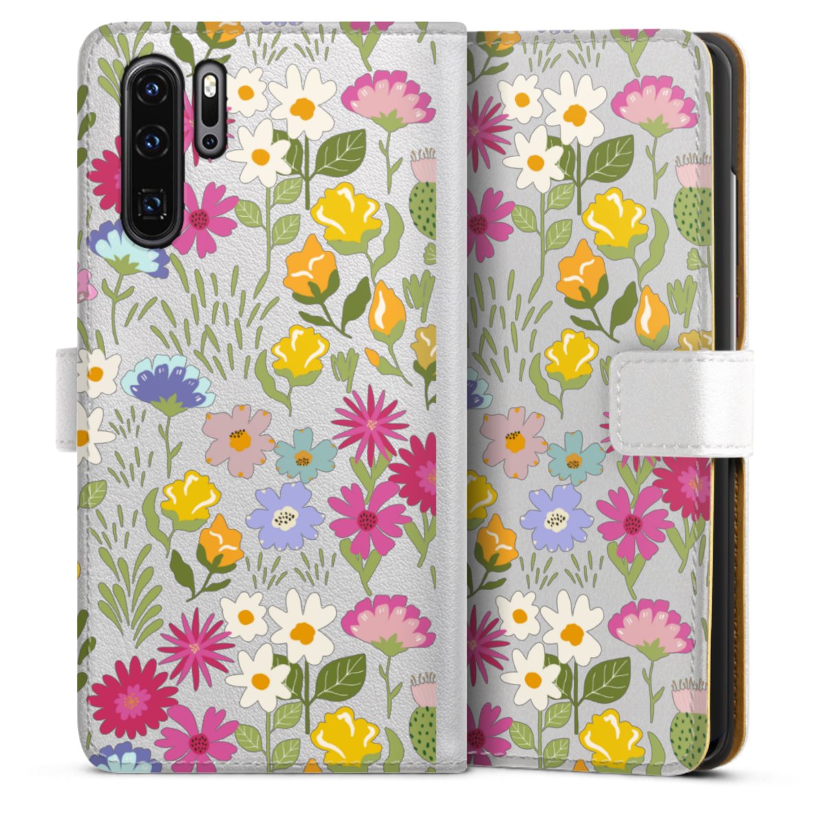 For our Sideflip Case we are using our advanced direct printing technology. The back and frontside are fully printabale, the inside of the phone bag is left unprinted. You can order the phone case without print, printed completely or also with a partial print.