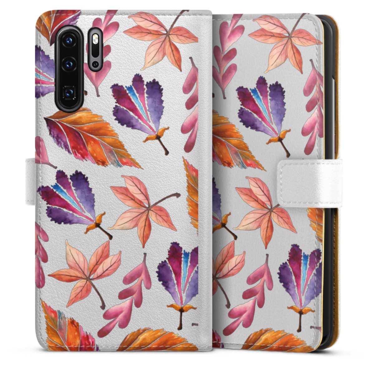 For our Sideflip Case we are using our advanced direct printing technology. The back and frontside are fully printabale, the inside of the phone bag is left unprinted. You can order the phone case without print, printed completely or also with a partial print.