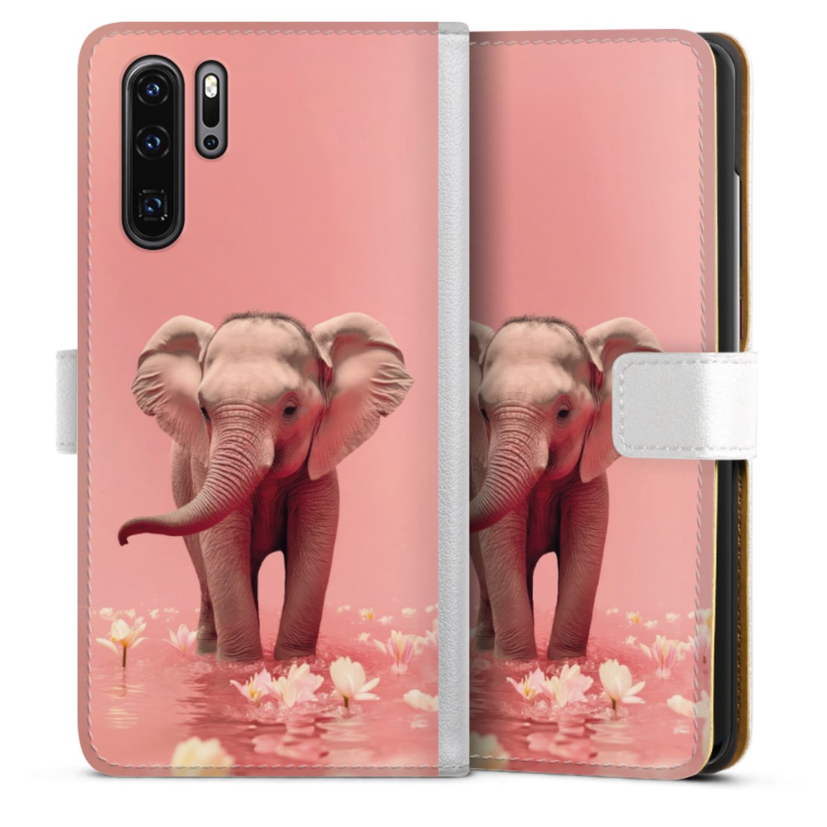 For our Sideflip Case we are using our advanced direct printing technology. The back and frontside are fully printabale, the inside of the phone bag is left unprinted. You can order the phone case without print, printed completely or also with a partial print.