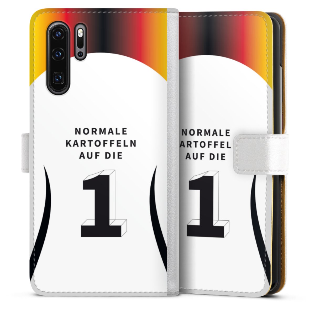 For our Sideflip Case we are using our advanced direct printing technology. The back and frontside are fully printabale, the inside of the phone bag is left unprinted. You can order the phone case without print, printed completely or also with a partial print.