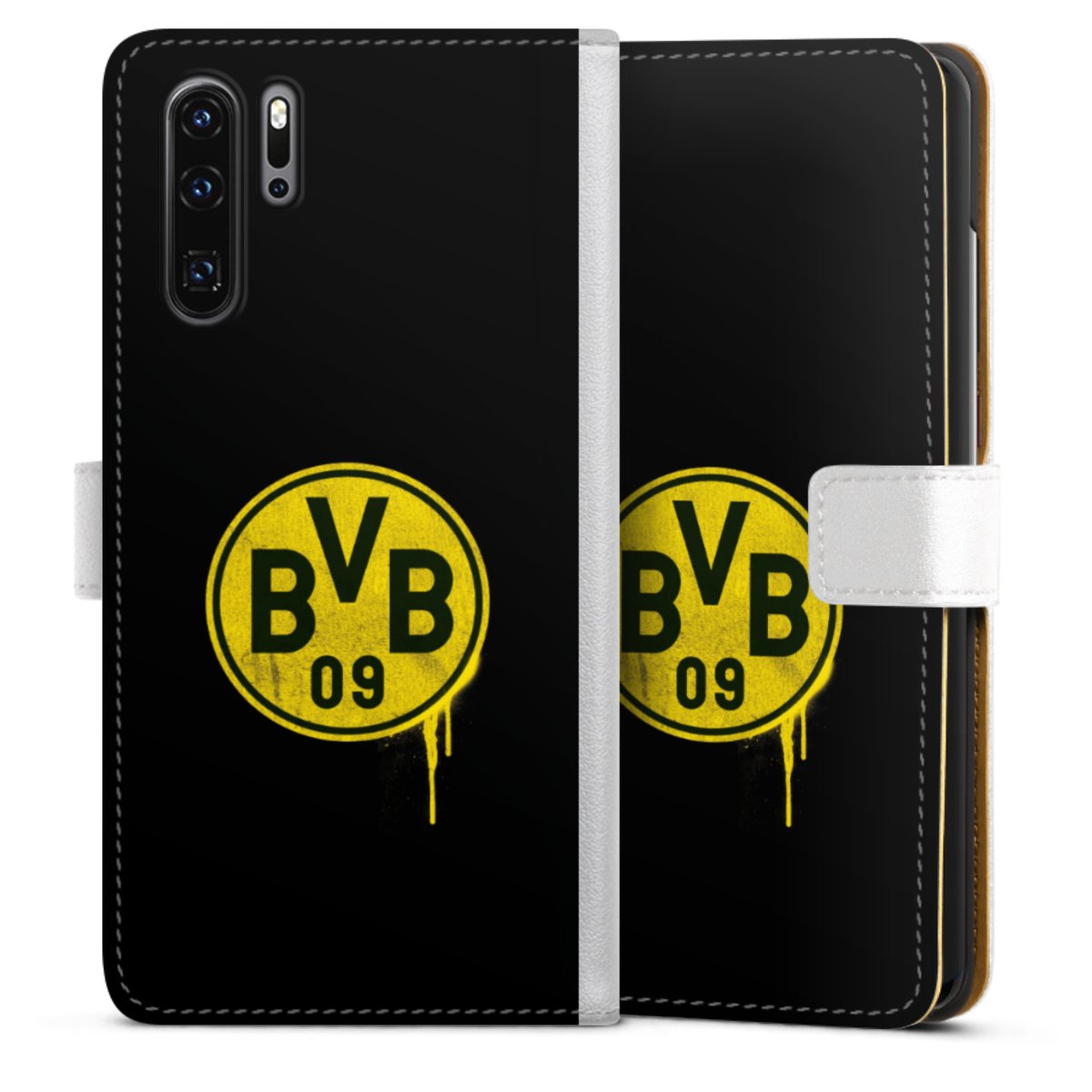 For our Sideflip Case we are using our advanced direct printing technology. The back and frontside are fully printabale, the inside of the phone bag is left unprinted. You can order the phone case without print, printed completely or also with a partial print.
