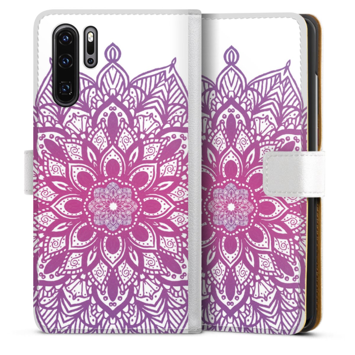 For our Sideflip Case we are using our advanced direct printing technology. The back and frontside are fully printabale, the inside of the phone bag is left unprinted. You can order the phone case without print, printed completely or also with a partial print.