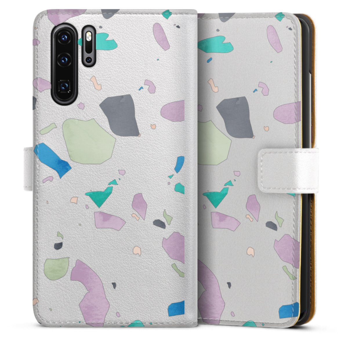 For our Sideflip Case we are using our advanced direct printing technology. The back and frontside are fully printabale, the inside of the phone bag is left unprinted. You can order the phone case without print, printed completely or also with a partial print.