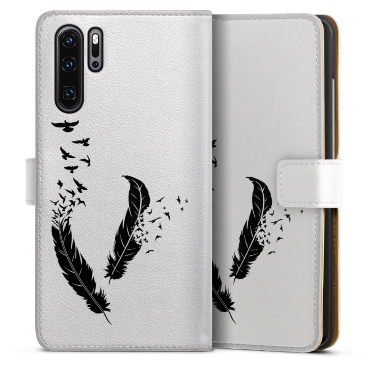 For our Sideflip Case we are using our advanced direct printing technology. The back and frontside are fully printabale, the inside of the phone bag is left unprinted. You can order the phone case without print, printed completely or also with a partial print.