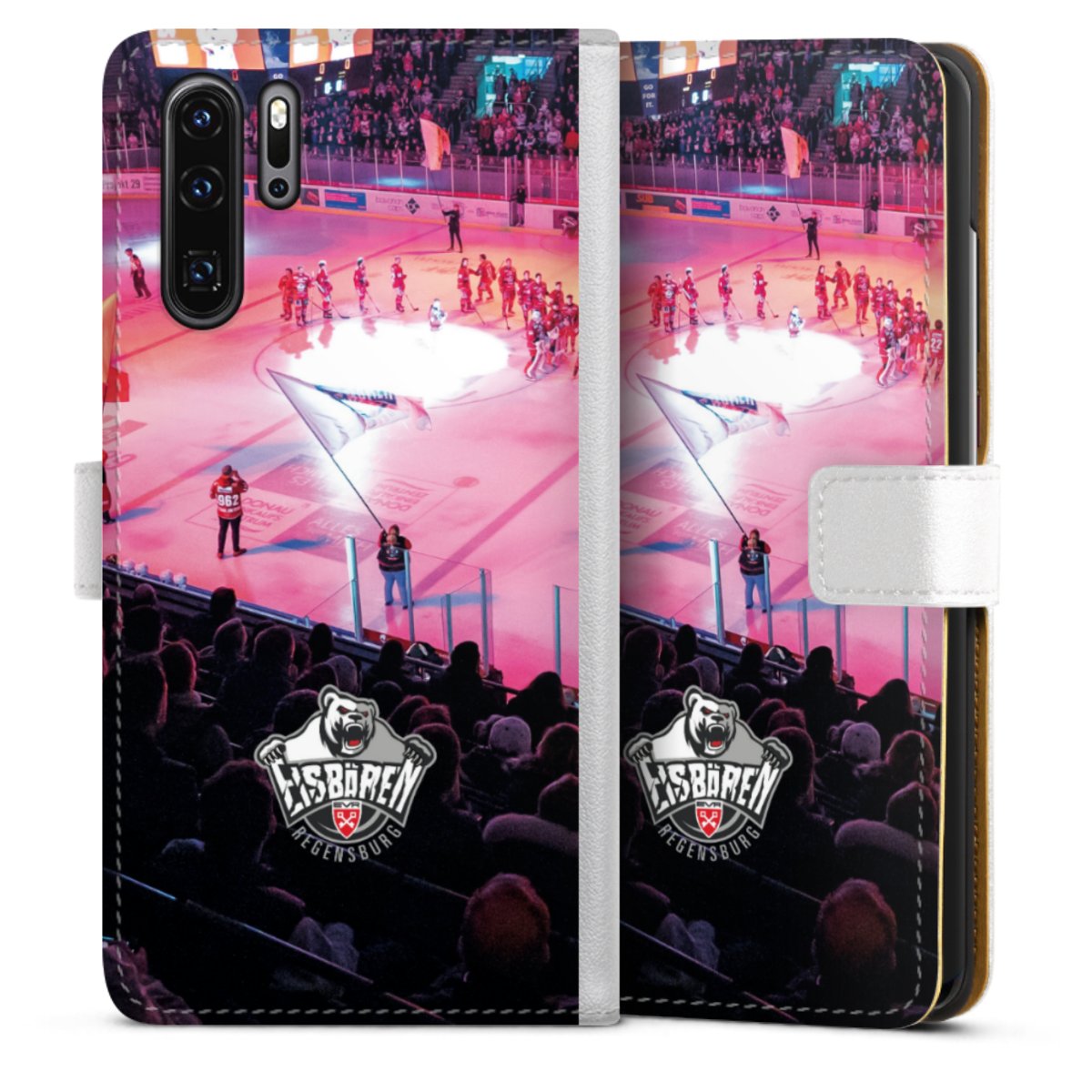 For our Sideflip Case we are using our advanced direct printing technology. The back and frontside are fully printabale, the inside of the phone bag is left unprinted. You can order the phone case without print, printed completely or also with a partial print.